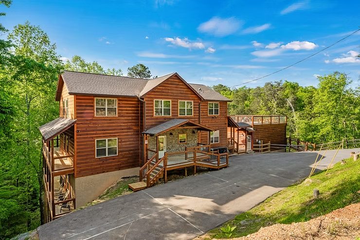 Elegant Elite Estate is a private 12-bedroom venue just minutes from Pigeon Forge. It’s a great choice for fall weddings thanks to its quiet setting and open mountain views. The large outdoor deck gives you plenty of space for your ceremony or reception, and your fall colors will look amazing against the trees. Inside, you’ll find roomy common areas and a comfortable layout that works well for both small and large groups. It’s simple, private, and easy to make your own style shine. Click here to learn more about Elegant Elite Estate.