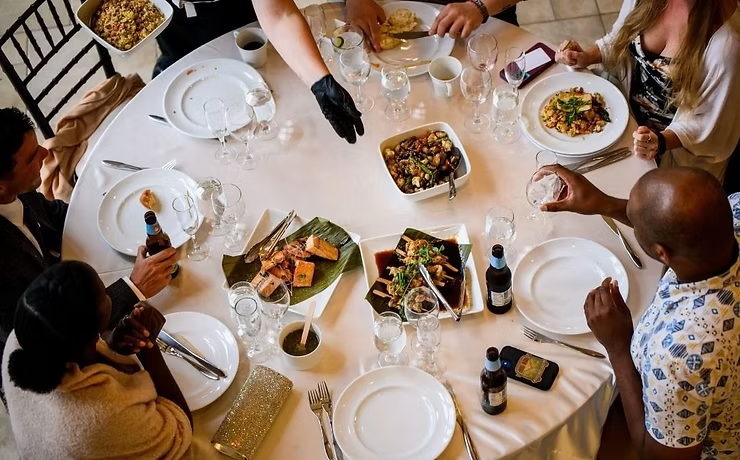 Family-style dinner: Shared dishes encourage conversation and keep the atmosphere warm and communal. This format feels natural and removes the formality of plated service.