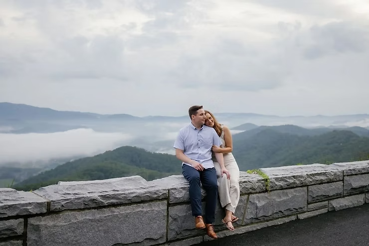 Parking is limited, so timing matters. Because this is a roadside overlook, sessions here work best when paired with another nearby location. This spot is ideal for couples who want a dramatic Smoky Mountain backdrop with minimal walking and a short time commitment.