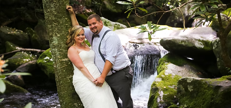 Laurel Falls is one of the most accessible waterfall locations in the Smoky Mountains and a popular choice for couples who want a lush, nature-focused backdrop. The 80-foot waterfall flows over multiple rock ledges and is framed by dense greenery, creating a soft and romantic setting that feels immersive without requiring a long or difficult hike.