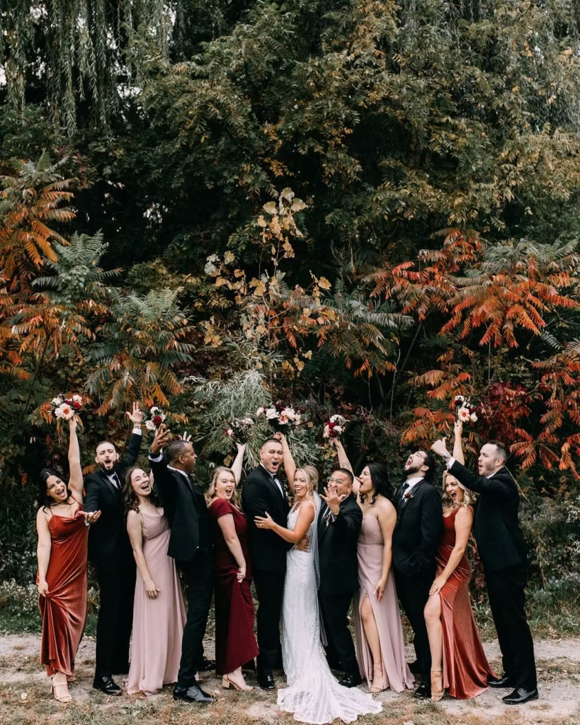 Because fall includes a wide range of tones, from soft neutrals to deeper, richer shades, there are many directions a couple can take. Some prefer simple, timeless colors that feel refined in any setting. Others choose bolder combinations that highlight the season and stand out in photos. There’s no single right answer. The goal is to select colors that feel connected to the environment and consistent with your personal style.