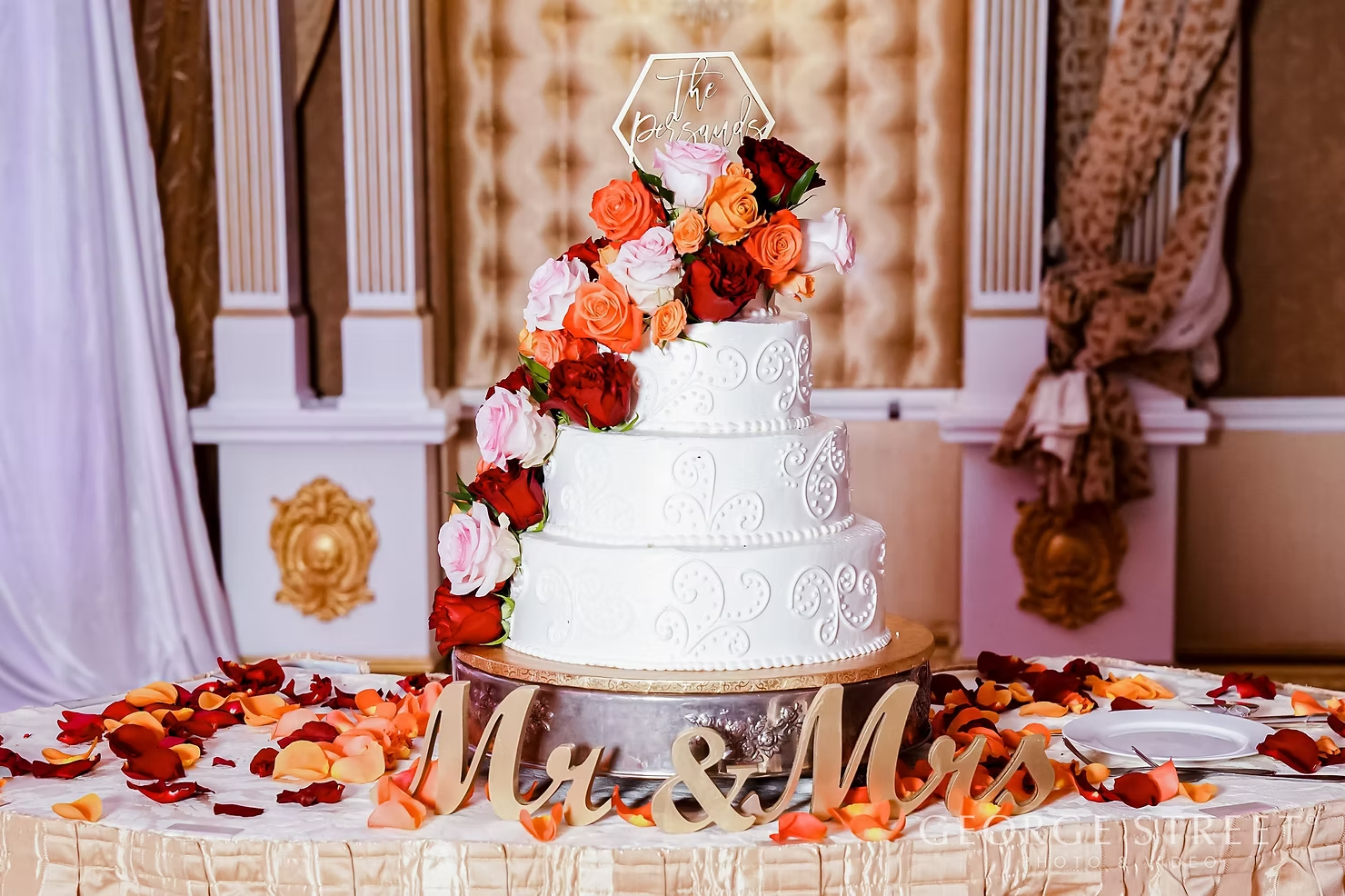 The wedding cake is typically a central element of the reception, making it an effective place to reinforce a fall wedding color palette. Color can be introduced through subtle design choices rather than bold decoration. Neutral base colors, such as ivory or cream, allow seasonal tones to appear through details like textured buttercream, layered finishes, or restrained accent colors.