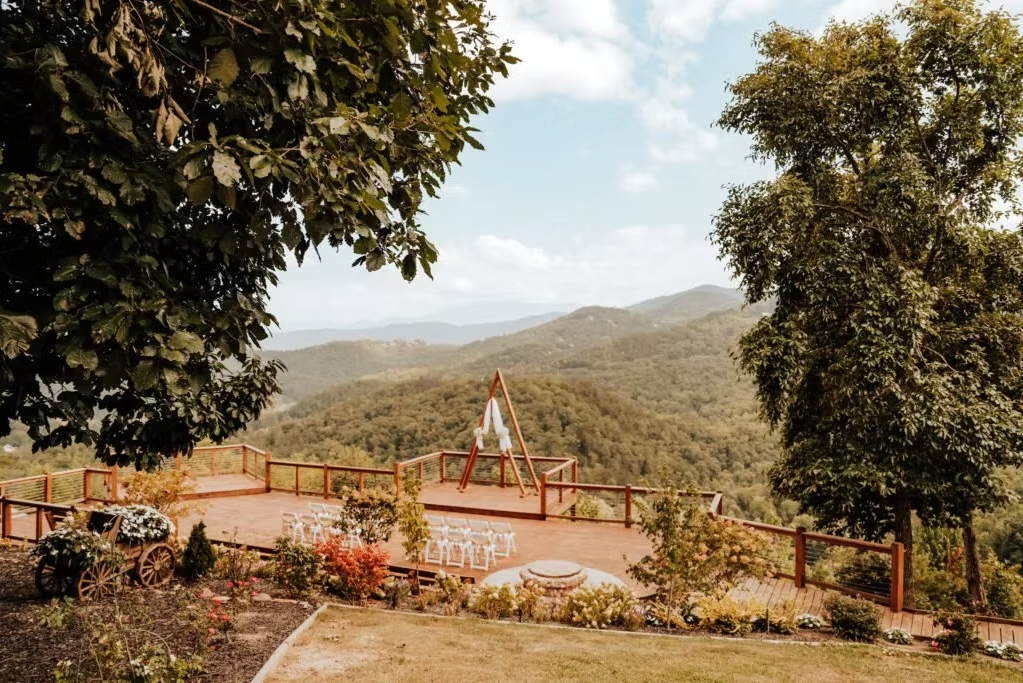 While the venue offers elevated Smoky Mountain views, lodging capacity and shared amenities are limited. The venue does not include a dedicated indoor reception space, which can reduce flexibility for longer celebrations or weather-related changes. Parking and access can also be more constrained due to the private mountaintop location.