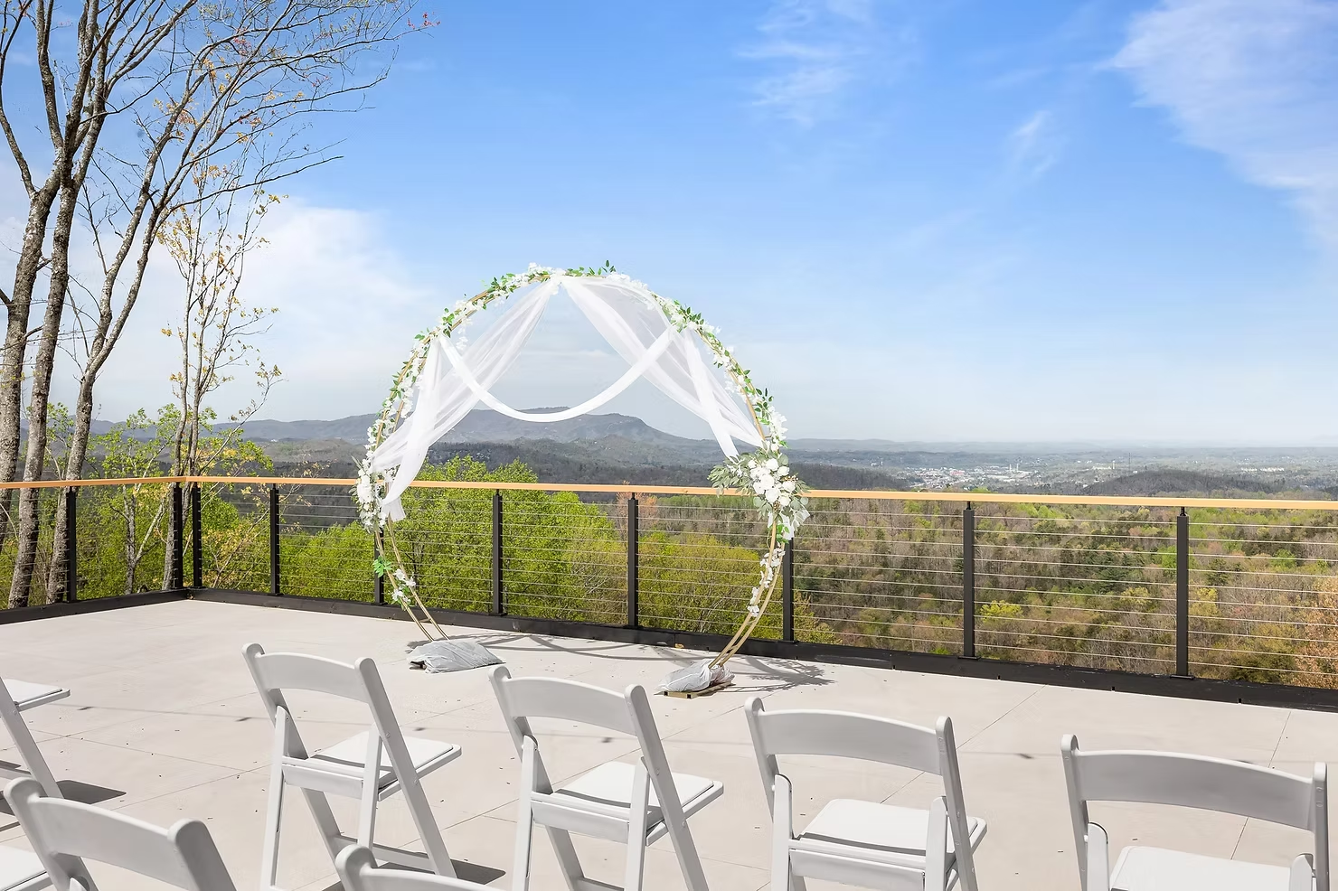 • Grand Sojourn Deck – Outdoor deck with panoramic Mount LeConte views, ideal for ceremonies or receptions up to 60 guests.