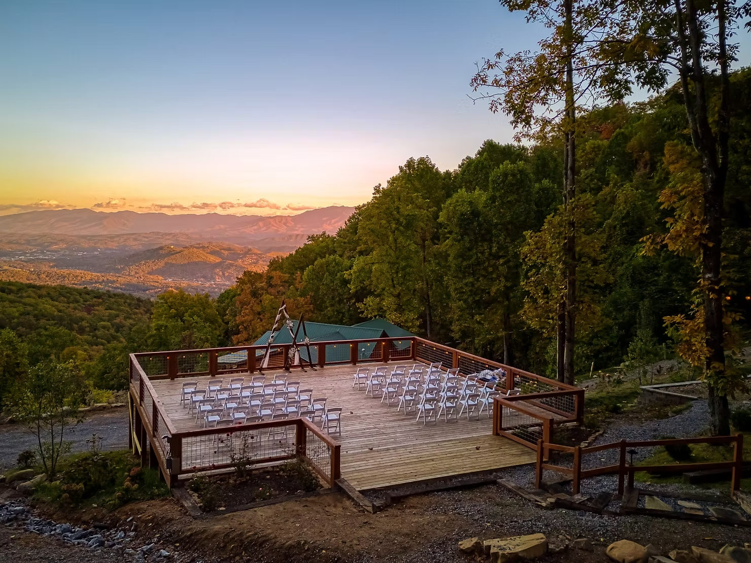 • Grand Sojourn Deck – Outdoor deck with panoramic Mount LeConte views, ideal for ceremonies or receptions up to 60 guests.