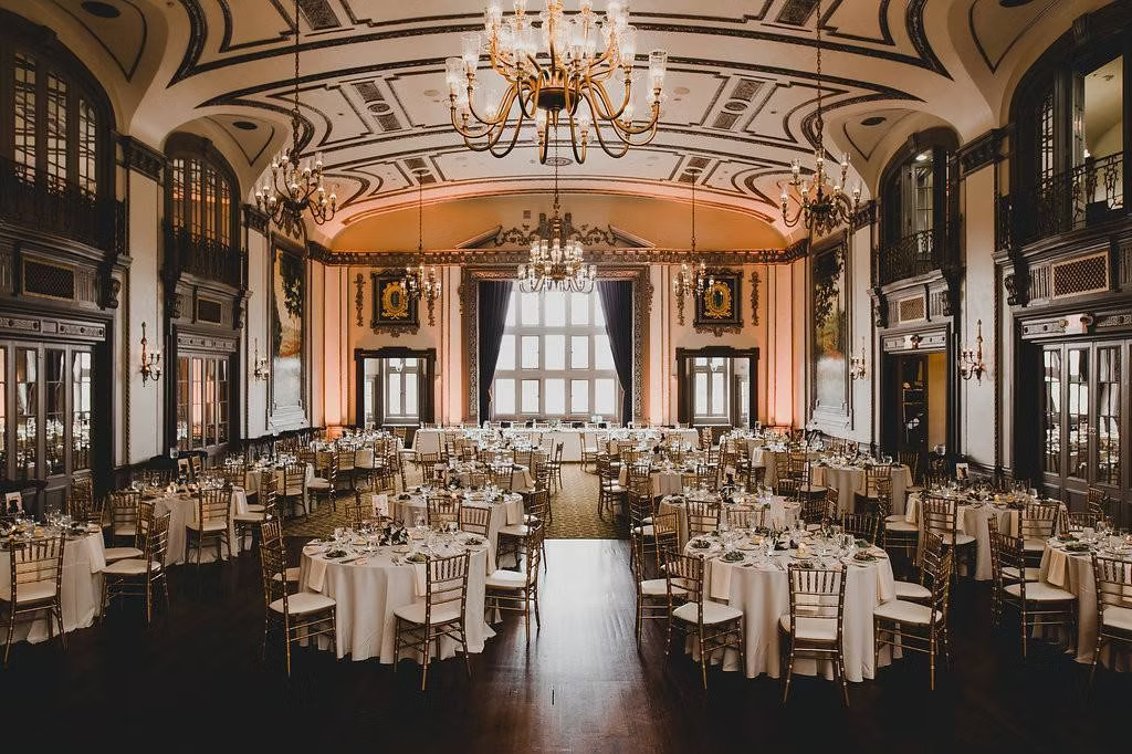 Indoor wedding venues often accommodate larger guest counts than outdoor or micro wedding venues. Event halls, lodges, and ballrooms are designed to meet safety requirements and support seating, dining, and dancing within one space.