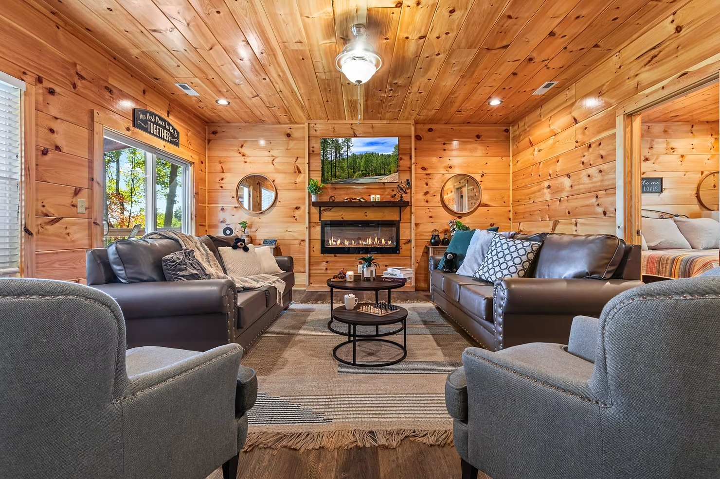 The Grand Sojourn is a tiny home venue designed for weddings that want convenience and community in one place. You can host up to 60 guests for the ceremony and reception, with overnight space for up to 80 guests across 40 on-site tiny homes. The property features a pickleball court, shuffleboard, scenic walking trail, firepits, and shared gathering areas, giving guests plenty to enjoy throughout the stay. With privacy, comfort, and beautiful Smoky Mountain surroundings, it’s a strong fit for couples who want everyone together in one location.